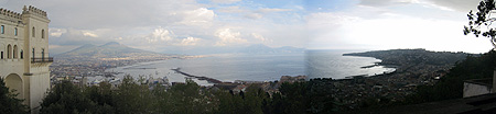 Aquella mañana, -el domingo pasado, exactamente, hace ahora pues una semana ya- estuvimos en el Museo de Capodimonte. Bajamos luego a comer hasta una pizzería muy popular (supongo que por conocida, pero también popular en sentido vertical, o sea “muy de barrio”) de la Piazza Caritá, en medio de Vía Toledo. Esta calle es la arteria vital y turística de la ciudad. A su lado crecen y se despliegan antiguas vías, muchas de ellas construidas por los españoles, por las que culebrea una abigarrada multitud de inquietos, pero pausados, napolitanos. La estrechez de estas calles, larguísimas, y la constante presencia de cientos de prendas tendidas por ventanas y balcones, como banderas de un palio cotidiano, impide que llegue la luz del sol hasta el suelo. En contraposición a este centro histórico y ruidoso de la ciudad, tanto Capodimonte como el barrio del Vomero, elevados ambos vertiginosamente y de pronto, aparecen más ordenados, más despejados, más silenciosos. Además, han crecido en círculos por las laderas de los montes, mientras el centro antiguo tiende mejor a la cuadrícula y a las callejuelas radiales.