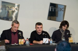 Después España. En la Fnac. Manuel Vilas deja en nuestras manos su novela. Lee un discurso apócrifo de Fidel Castro, que parece de Fidel Castro renunciante. Cuánto sabe Vilas, dicen todos. Montones de gentes. Sentí no poder saludarte, maestro. Pero hablé mucho con Loli y aprendí. La foto de arriba se la cojo a José Antonio Melendo, al que últimamente le tengo gran devoción y que ha colgado en Flickr un reportaje del evento. El discurso de Fidel estuvo precedido de dos muy personales intervenciones a cargo de Ignacio Peiró y David Mayor, ambas creo que justamente acodadas sobre el tono de la novela. He empezado a leerla. Ya he dicho en un comentario que se anuncia por fin la libertad de la prosa.