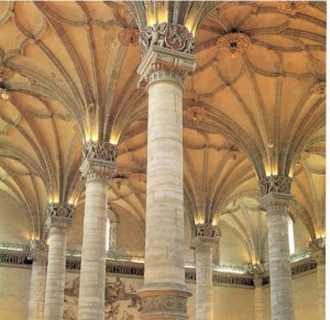 El tema del Simposio centra un periodo (1450-1550) , un territorio –el de la Corona de Aragón, y una disciplina –la arquitectura- decisivos y fundamentales en la historia del arte europeo: época y espacios de tránsito en los que en general se van abandonando las fórmulas góticas que se sustituirán por las proporciones y las medidas propios del Renacimiento, con tanta decisión en algunos lugares y momentos, como incertidumbre e incluso inmovilismo en otros . El panorama de esa centuria de transformación es ciertamente complicado a la hora de abordarlo desde la óptica del investigador, pues ni en los tiempos, ni en los elementos que se van introduciendo o sustutiyendo hay homogeneidad. Por eso parece tan necesario el planteamiento y el programa que viene a desarrollarse en este Simposio internacional. Porque durante tres jornadas completas investigadores de distintas universidades y territorios van a poner en común sus apreciaciones y tesis. Las puestas en común son siempre enriquecedoras y desde luego clarificadoras. Abren caminos. Y desde la óptica aragonesa puede ser sumamente productivo, porque en Aragón este periodo artístico es uno de los más ricos de la historia.