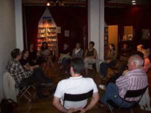 Desde hace unas semanas leo «Destino y Trazo (en bici por Aragón)», el título bajo el que Ángel Gracia ha reunido los artículos dominicales escritos para Heraldo de Aragón pero con vocación de libro desde el principio, como él mismo explicó en el Club de Lectura de El Pequeño Teatro de los Libros (no pude asistir, pero la crónica curva de Javier López Clemente lo cuenta bien – de allí también he pillado la fotografía de más arriba-). Leo este libro magnífico cuando lo que quiero es un tiempo de tranquilidad y descanso; cuando lo que me apetece es un lenguaje de construcción limpia e inteligente; un pensamiento estructurado e hilvanado desde la reflexión a la emoción y viceversa; un discurso pegado al paisaje y la gente, incluso a las cosas, pero siempre interpretándolas y explicándolas desde una lucidez inapelable. Sigo pensado que si algo se puede sentir hacia un libro es agradecimiento. Y tal es lo que me produce día tras día la lectura de «Destino y Trazo (en bici por Aragón)».