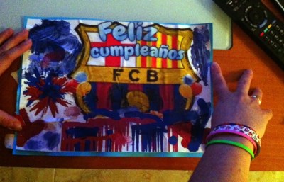 Hoy es el cumpleaños de Jorge. Yo que soy mayor (ya mayor que muchas cosas y que muchos), recuerdo bien el día en que mi hermano y padre de mi sobrino llegó a este mundo (era sábado); recuerdo bien la tarde en que me llevaron a conocerle a la clínica, apenas unas horas después de su nacimiento. Recuerdo muchas cosas, que es lo que les pasa a las hermanas mayores y a las tías. Lo que no recuerdo es cuándo se hizo del Barça. Daniel, en un sentimiento de identificación con su padre (vínculo fortísimo entre ambos, vínculo completamente atávico entre ambos) también es del Barça. Aunque ahora menos, absolutamente volcado y entregado al baloncesto como está ahora, especialmente al CAI Zaragoza. Su distanciamiento respecto al fútbol no le ha impedido, sin embargo, compartir con su padre un regalo tan colorista. Ahora hay que esperar para ver cuál será la sorpresa para su madre, que también cumple años el viernes.