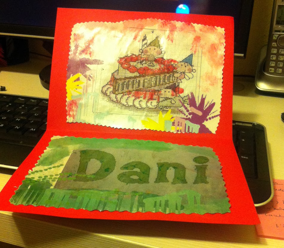 Por un lado, confeccionaron en el cole una postal de cumpleaños a base de plantillas de punto de cruz, labor en la que Inma es toda una maestra: