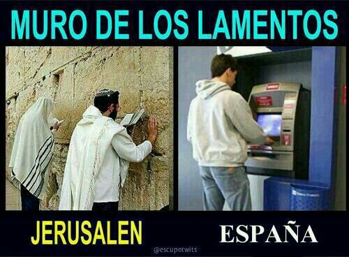 Quizás es una imagen que lleve tiempo dando vueltas por Google, no lo sé, la verdad. En todo caso no la había visto, aunque para escribir el poema que sigue tenía en la cabeza exactamente el mismo tipo de similitudes, no obstante no naciera de una imagen, sino de una frase que siempre repetía un compañero de trabajo cuando iba al cajero automático a sacar dinero (él decía «voy a pedirle dinero a la pared»), combinada con mi educación infantil católica (o pseudo-católica), y por supuesto la deificación postcapitalista del dinero. En cualquier caso, es evidente que el tema y la comparativa forma parte de la actual koiné global (he recordado también este artículo de Vicente Luis Mora al respecto de los cajeros automáticos: http://goo.gl/KGjoHZ. De entre los textos que él cita, sólo pensé al escribir «Cajero automático» en el de García Casado.