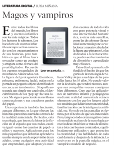 Estos días la prensa ha difundido el hecho de que los gurús de la tecnología de Silicon Valey alejan a sus hijos de las pantallas hasta los 14 años. No puedo valorar la decisión, que tendrá razones, aunque sus compañías voceen consignas bien diferentes. Creo que las aplicaciones de narrativa infantil y pedagógicas mediante realidad aumentada reúnen elementos con los que los futuros adultos tendrán que lidiar: interconectividad, familiarización con la inteligencia artificial, etc. No todo en las pantallas es óptimo, por el hecho de que sea innovador. Pero, tampoco todo es tan negativo como el extendido mal uso de la tecnología parece indicar. Más bien se trata de alimentar a ésta con buenos contenidos, equilibradamente utilizados y que potencien la creatividad y las habilidades de cada cual durante y después de la infancia. Lo nocivo no es la pantalla mágica, es el vampírico modelo de negocio.