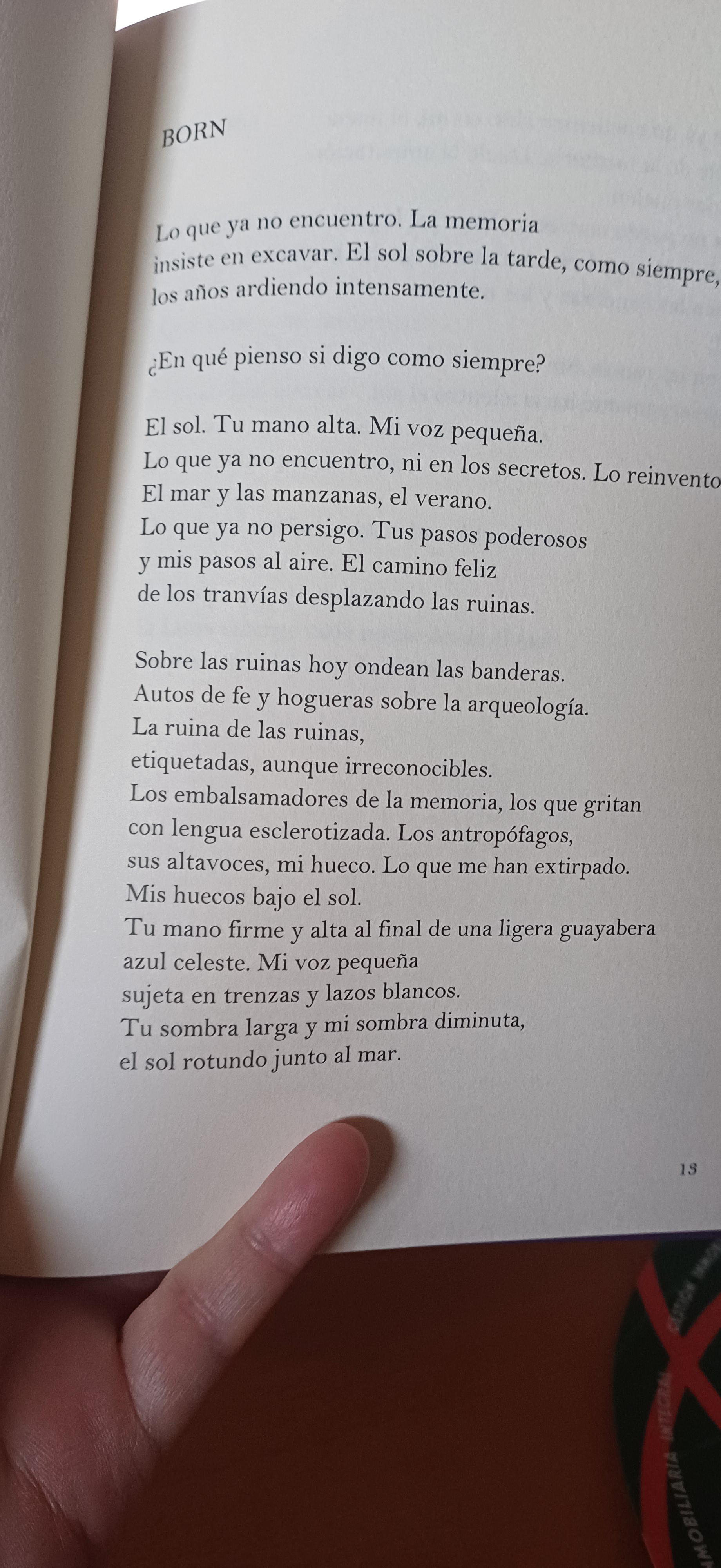 Born es el primer poema «No Morir». Mi padre trabajó muchos años en el mercado del Born, en Barcelona, y algunos domingos de verano, por la tarde, tenía que ir a comprobar que las cámaras de almacén de frutas para el que trabajaba, que si no recuerdo mal se llamaba «Perales», seguían funcionando. Muchas de esas tardes me llevaba con él. El título juega, evidentemente, con el nombre del mercado barcelonés y el adjetivo inglés «born».